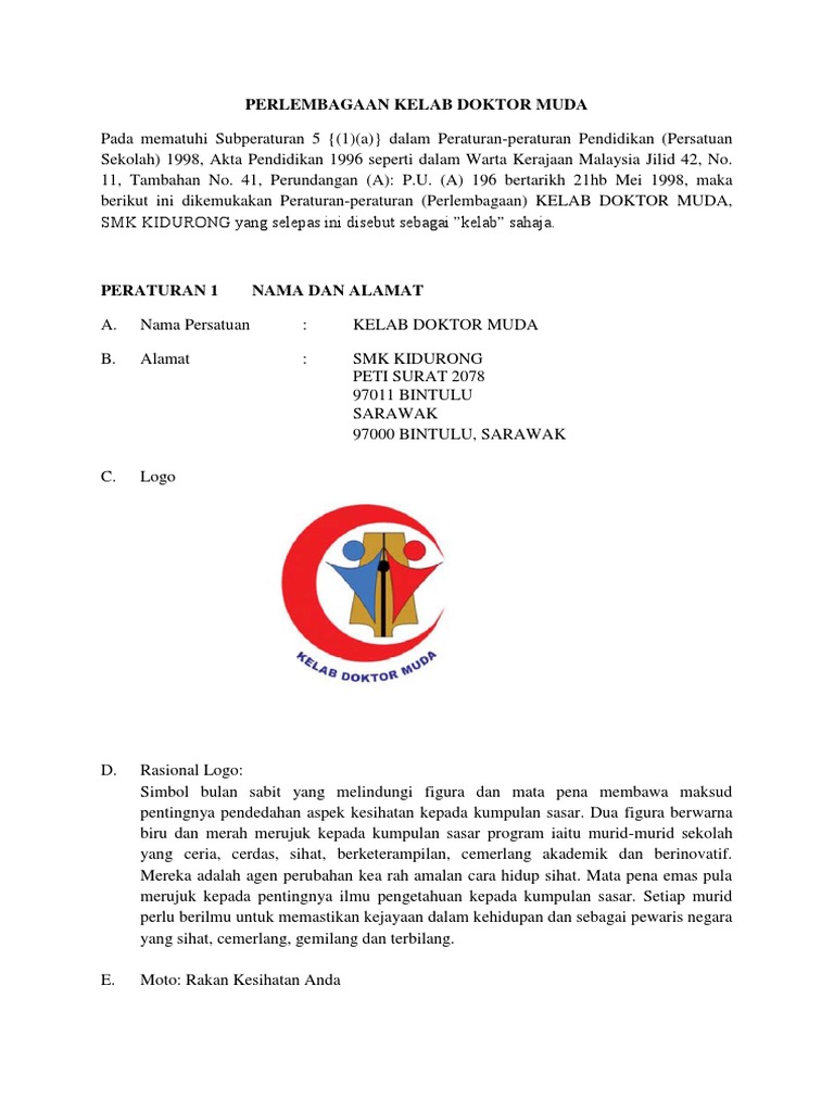 Perlembagaan Kelab Doktor Muda 2018 Pdf